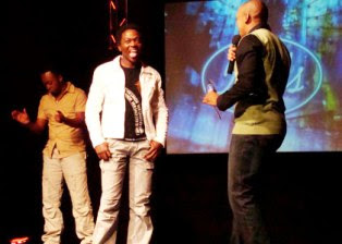 Mkhululi from Zimbabwe after announcing him that he is in top 8 of Idols